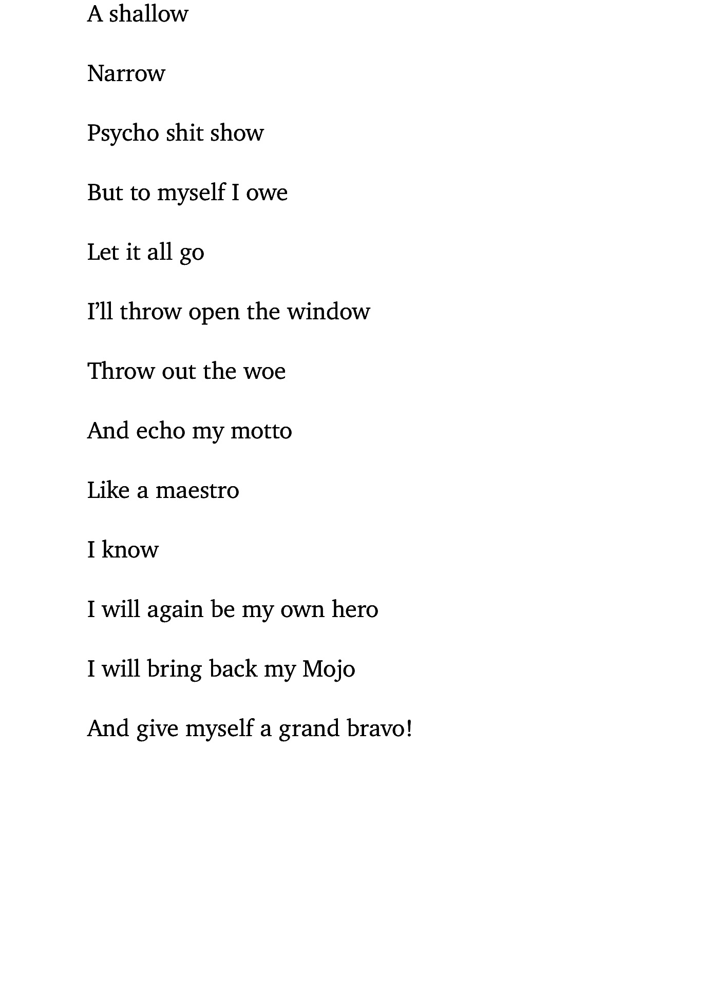 She said, “Okay I will!” This caused me to lose my shit altogether and then I screamed at her, “Oh no, you won’t,”