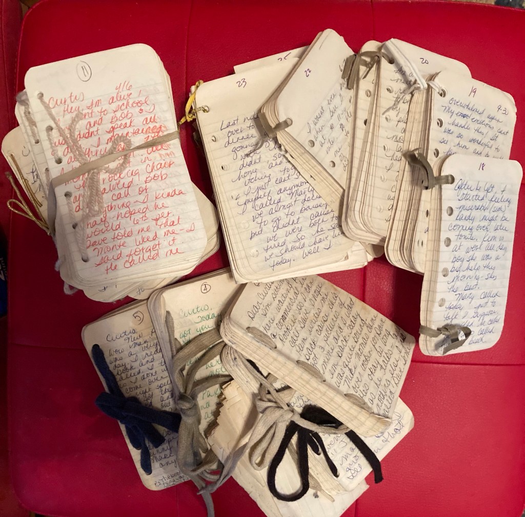 “I had a bad night last night feeling sorry for myself-really wish something good would happen! I’ve got to stop lamenting on what might have; Tony, Ben, Tim still seem to stand out most in my mind. Of course, I’ll never get over Mark…. I really want to go back to the beginning and read this diary but I know my heart will break. It’s just too painful. What does that mean? Does it mean that I had a really bad life? I wouldn’t call it all bad,I guess intense would be a good word. Of course time heals all wounds but I think with me time heals to a point but there’s always going to be a dull pain when I think back to Mark, Ben, Tony, Dan, Dave, Kitty, Anne, Melanie, Terry- god the list goes on.. In the overall view I can’t say that I’ve ever found happiness here in NC. Of course there have been periods like my time with Grama, and the early part of my marriage but overall there seems to have been a constant cloud. On the other hand I can thank God-as I do every night- for my health and safety but what a price to pay! I know I can’t have it all but is it true that you have to make a choice? I want true happiness for more than a week! I want security and I want this with no compromises! Sometimes I really think I deserve that -I’ve paid my dues! On the other hand there are so many so much less fortunate than me. These conflicting emotions are really battling inside of me and I think the only way to preserve my sanity is to push it all back again and continue existing……waiting…..”